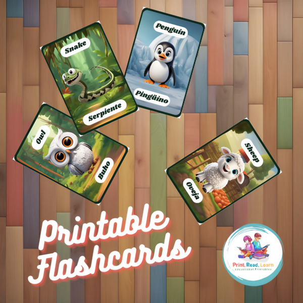 Set of 42 Printable, Multilingual (English, Spanish, French, Portuguese, Italian and German), animals flashcards + 10 Free Coloring Pages (copy)