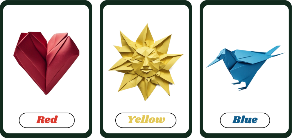 Set of 12 Beautiful Printable Colors Flashcards (Origami Style) + 4 Free Coloring Pages